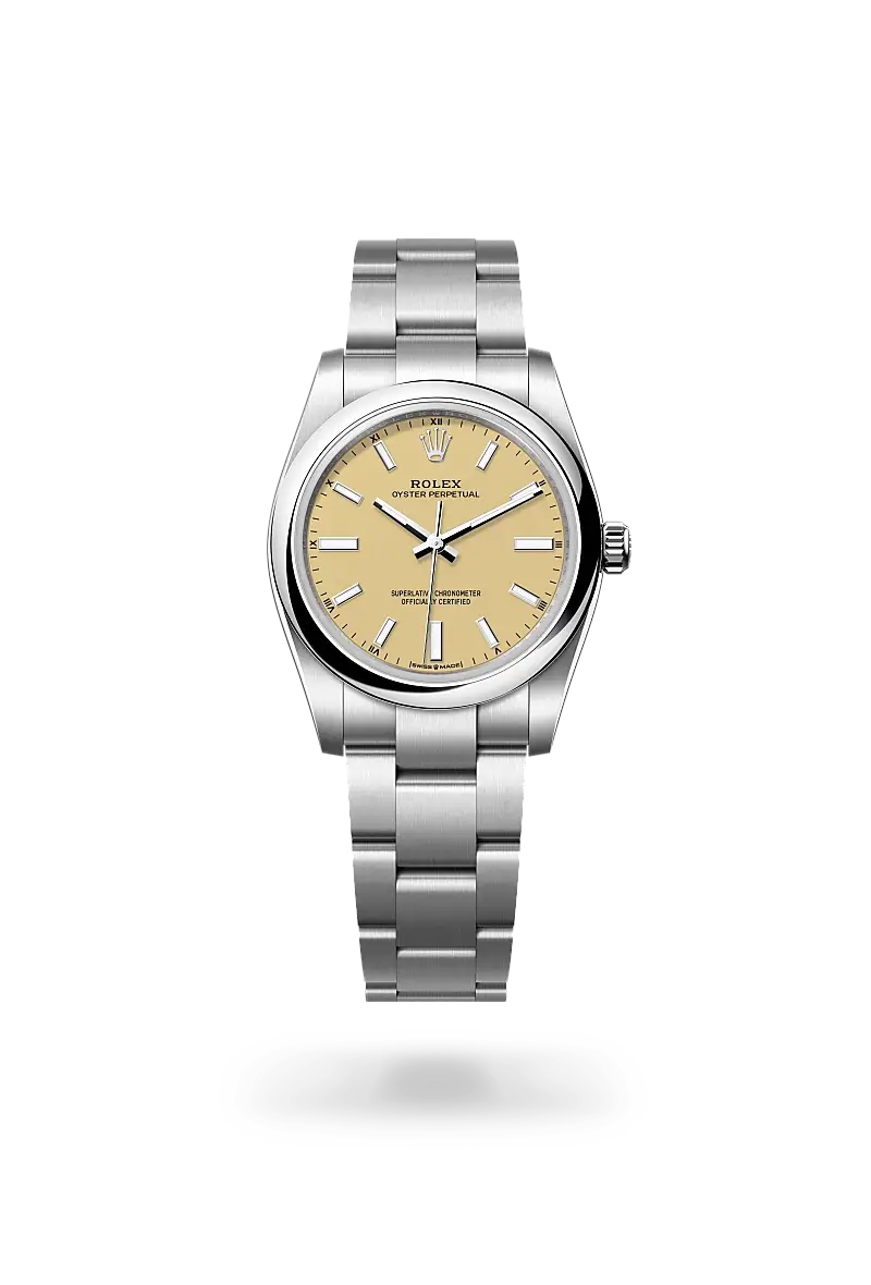 Die Oyster Perpetual ist ausschließlich aus Edelstahl Oystersteel gefertigt. Der speziell für Rolex entwickelte Edelstahl Oystersteel gehört zur Stahlsorte „Edelstahl 904L“ − einer Legierung, die meist in der Spitzentechnologie eingesetzt wird. Edelstahl Oystersteel ist äußerst korrosionsbeständig und zeichnet sich nach dem Polieren durch einen außergewöhnlichen und dauerhaften Glanz aus.