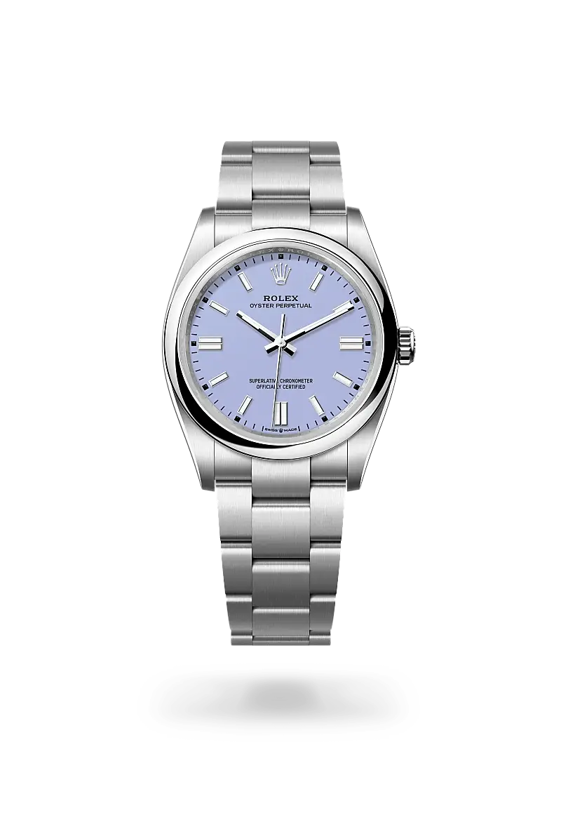 Die Oyster Perpetual bietet eine klare und präzise Anzeige der Stunden, Minuten und Sekunden. Die unterschiedlichen Ausführungen der Armbanduhr erscheinen mit Zifferblättern in verschiedenen Farben, subtil oder leuchtend: eine Auswahl von Gesichtern, stets mit einem aktuellen Touch. Von der matten Lackierung in Beige, Lavender oder Pistachio über die Lackierung in Candy pink, Grün, Türkisblau, Schwarz oder Med blue bis hin zu Silbern im Radialschliff – es gibt für jeden Stil das passende Gesicht. Die Oyster Perpetual verfügt über die umfangreichste Auswahl an Größen unter den Rolex Modelllinien: 28, 31, 34, 36 und 41 mm.